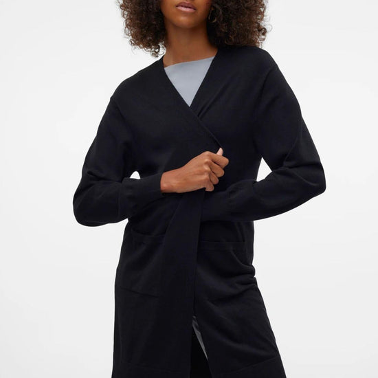 Cardigan lungo con scollo a V dal design leggero e versatile, perfetto come strato extra per completare qualsiasi look. Le maniche lunghe, i polsini a coste e le tasche frontali aggiungono praticità e stile, mentre la vestibilità loose fit garantisce comfort e libertà di movimento. Ideale da indossare con jeans per un look casual o con una gonna e stivali per un tocco più elegante. Tessuto principale 77% viscosa LENZING ECOVERO, 23% poliestere.