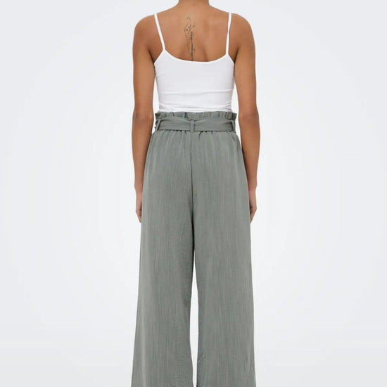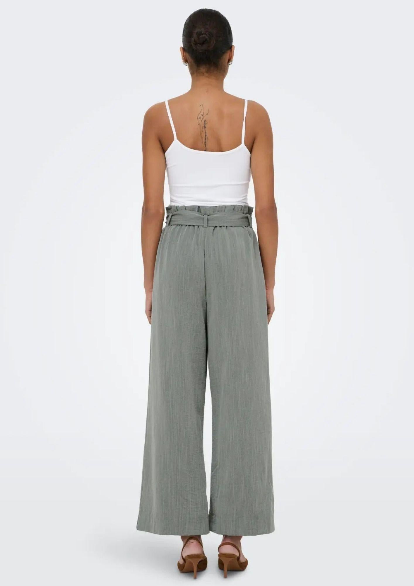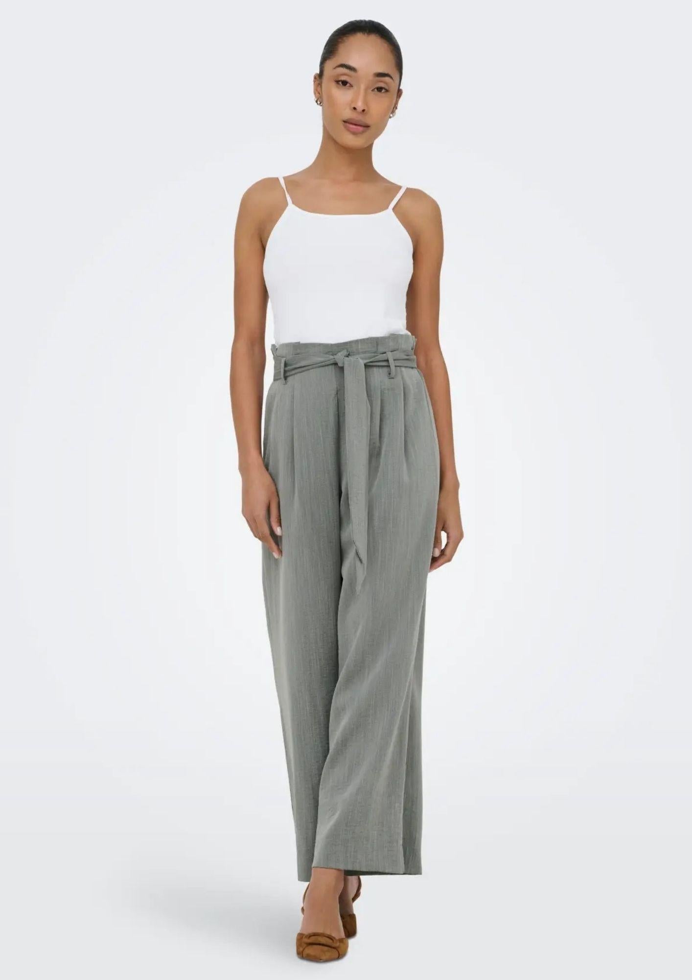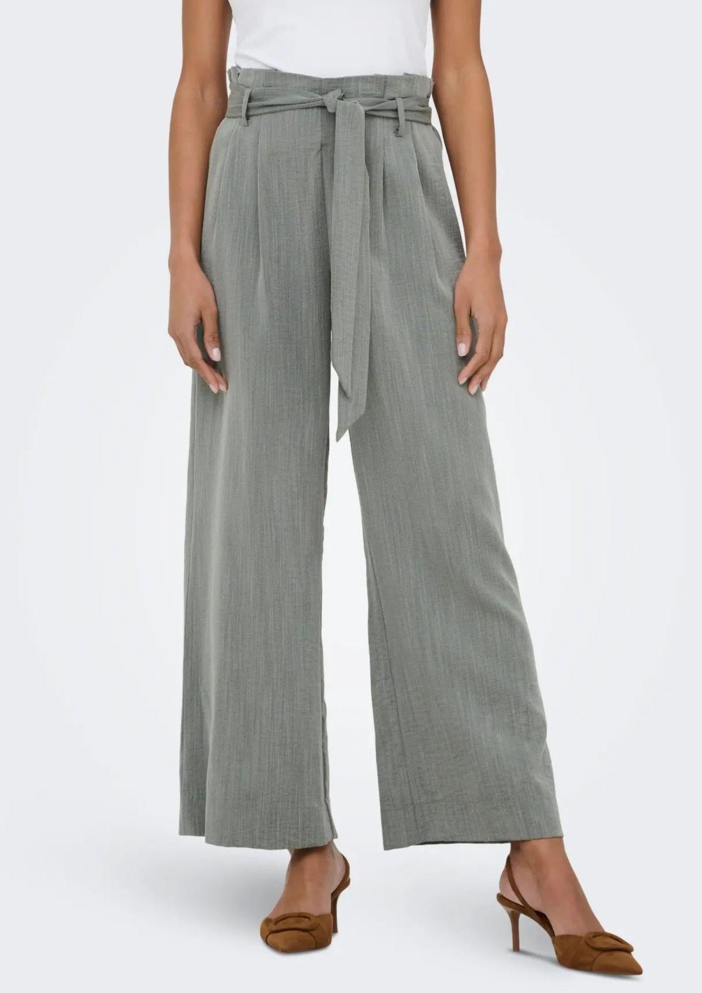 Pantaloni a caramella, fascia in vita caramella con cintura, flared fit. 53% Viscosa, 35% Poliestere, 12% In nylon