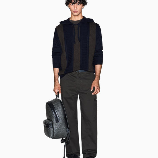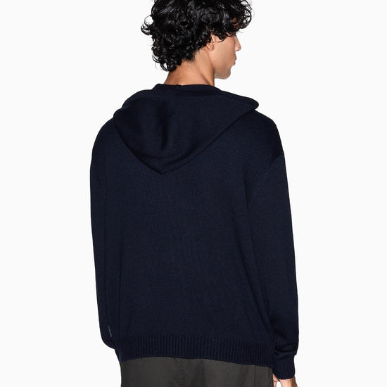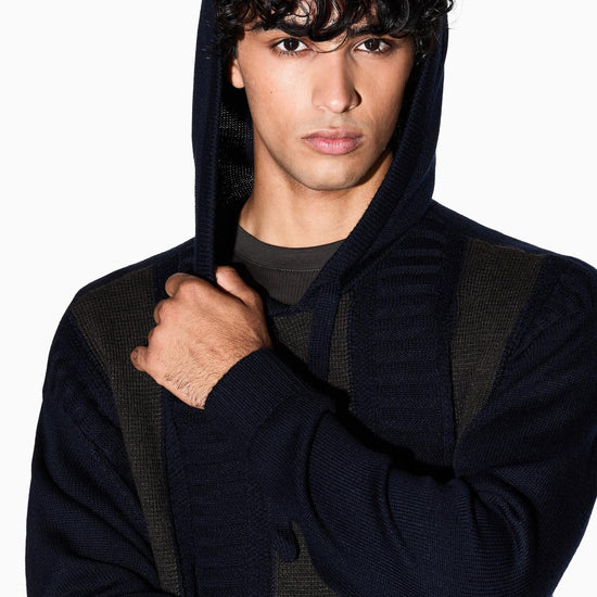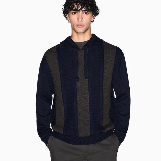 Maglione Uomo con cappuccio a blocchi Chocolate Melange Deep Navy