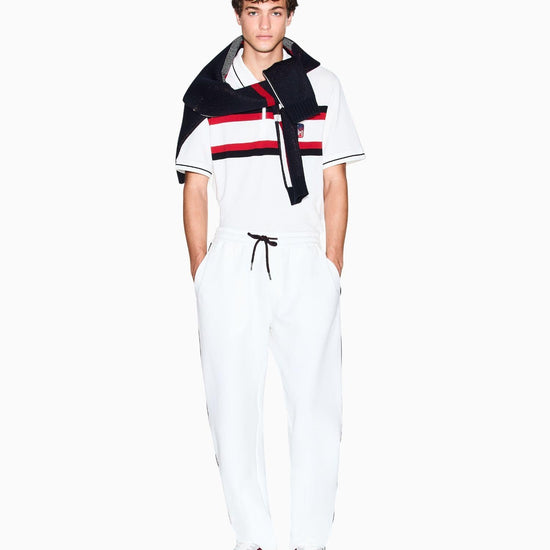 Pantaloni sportivi Armani Exchange da uomo bianchi realizzati in morbido misto cotone stretch per un comfort ottimale e uno stile casual dinamico. Il tessuto flessibile assicura libertà di movimento e una vestibilità confortevole, mentre il design minimalista garantisce un look moderno e pulito adatto a ogni occasione. Tessuto 79% cotone 17% poliestere 4% elastan, fettuccia 100% poliestere, fodera principale 79% cotone 17% poliestere 4% elastan, fodera secondaria 100% cotone.