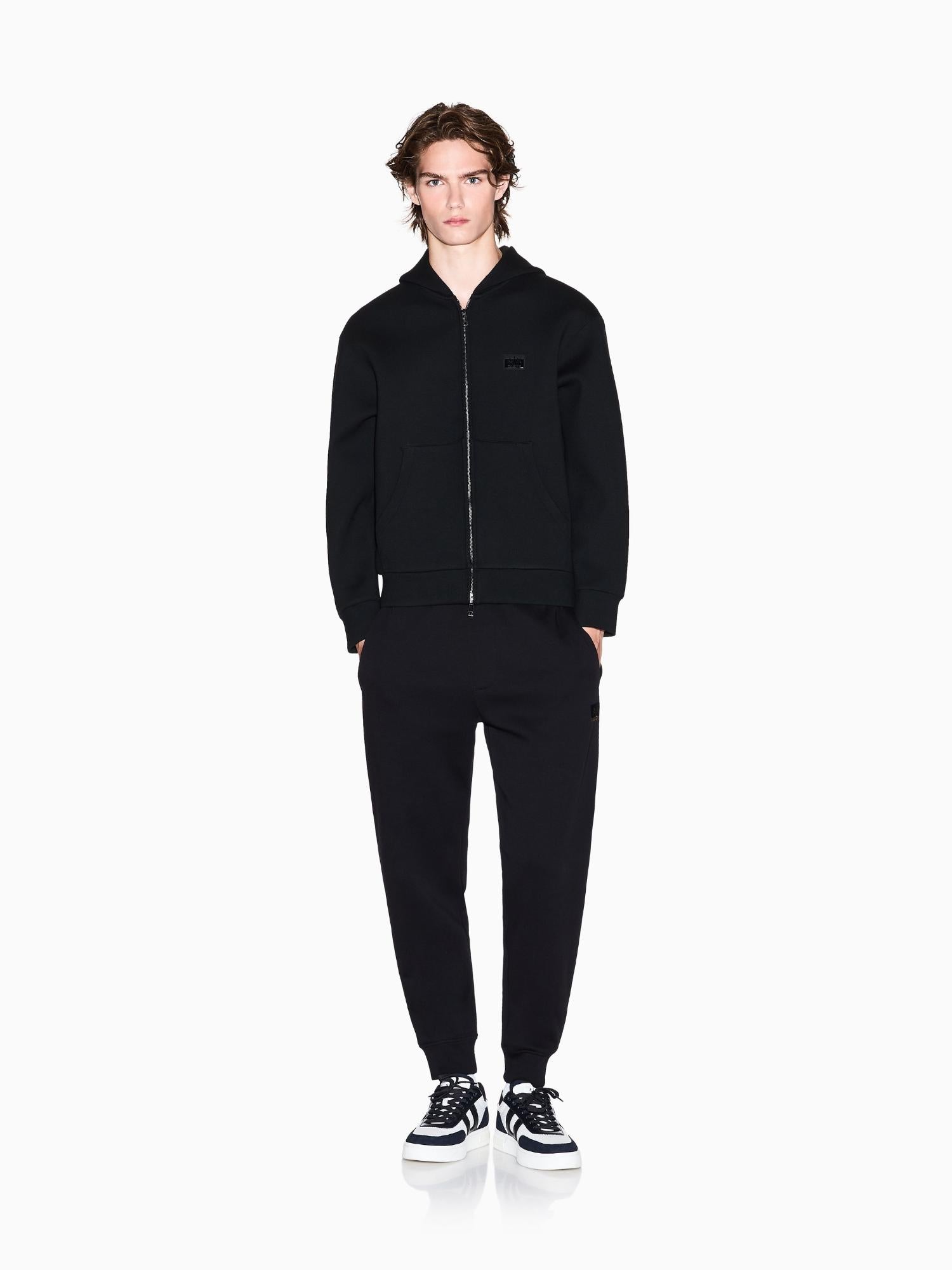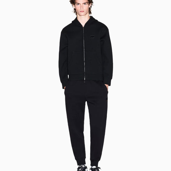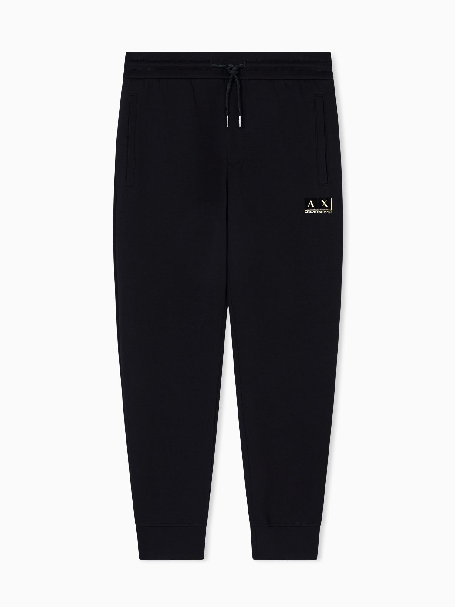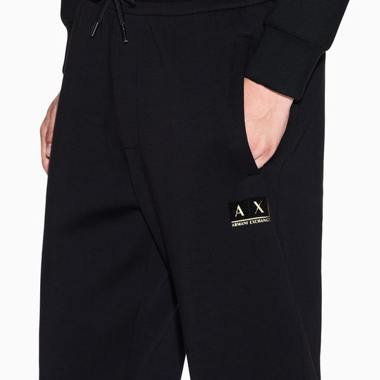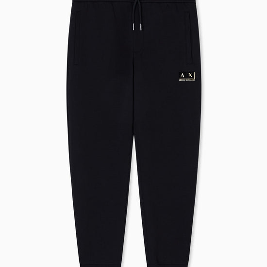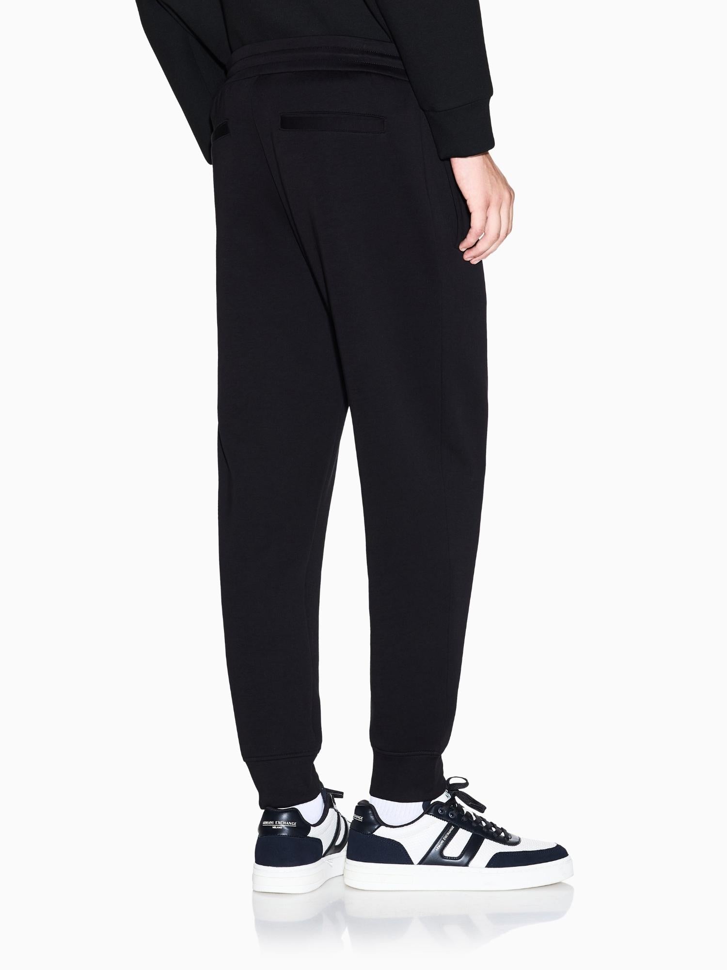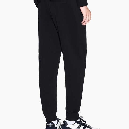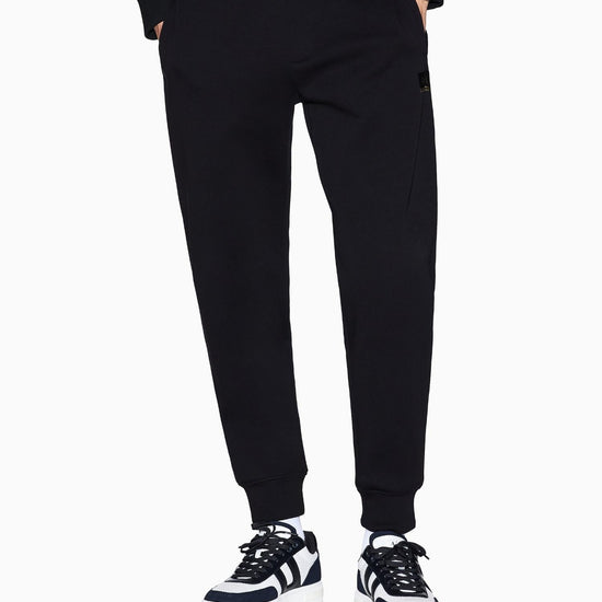 Jogger in cotone felpato nero realizzati in tessuto 79% cotone, 17% poliestere e 4% elastan con fodera principale della stessa composizione e fodera secondaria 100% cotone, caratterizzati da vestibilità rilassata con cavallo leggermente basso, coulisse in vita e logo applicato sul retro, perfetti per un look casual e confortevole con dettagli dorati che aggiungono un tocco luxury allo stile street