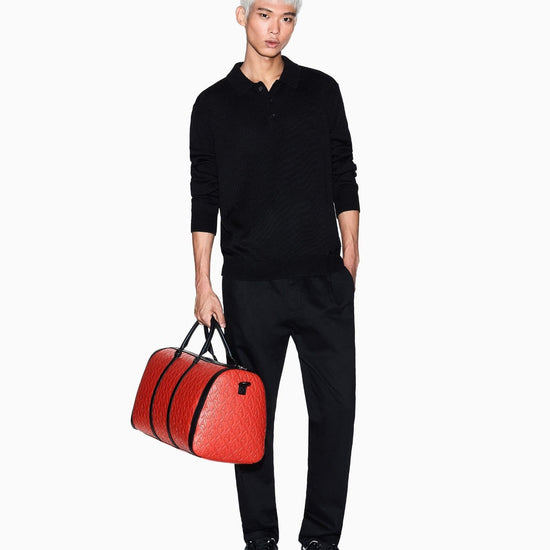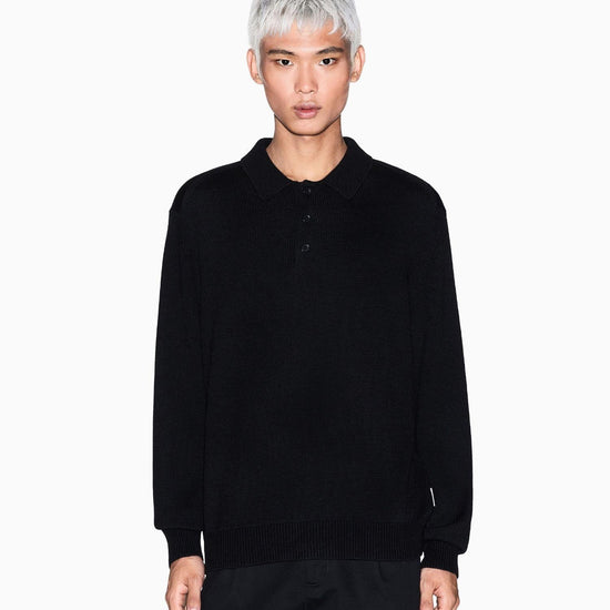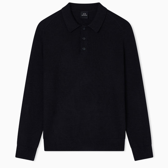 Armani Exchange Men's Elegant Black Wool and Cotton Knit Polo Shirt