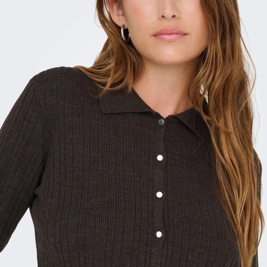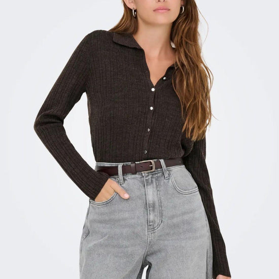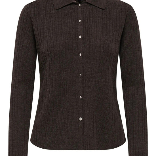 Knitted cardigan with polo collar, long sleeves, button closure, knitted fit.