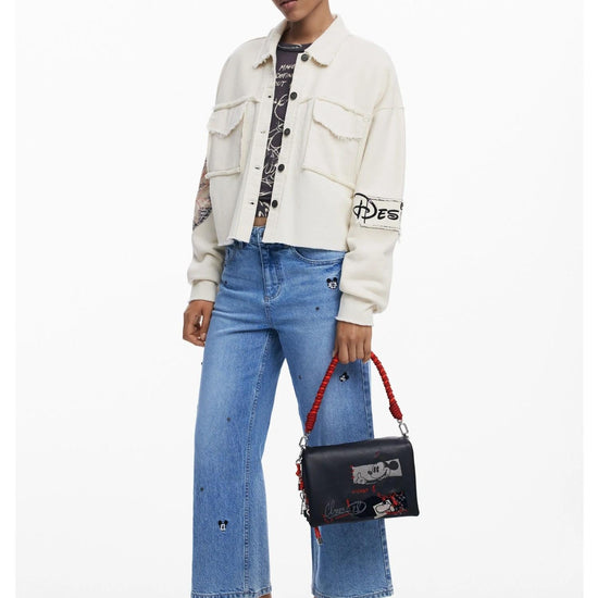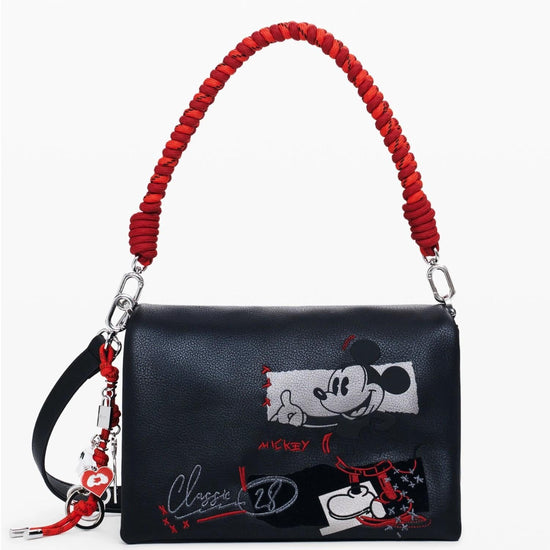 Borsa a tracolla in tessuto effetto pelle, con vari scomparti interni, manici intercambiabili con stampa di Mickey Mouse. Tasca interna con cerniera. Chiusura: patta, magnete e cerniera. Vari scomparti interni. Due manici intercambiabili. Portachiavi rimovibile. Scomparto interno. Effetto pelle. Progettato a Barcellona. Licenza: Disney. Misure: 25 x 6 x 16 cm. Composizione esterna: 100% POLIURETANO. Composizione interna: 100% POLIESTERE. Trimming fabric Material: 100% POLIURETANO.
