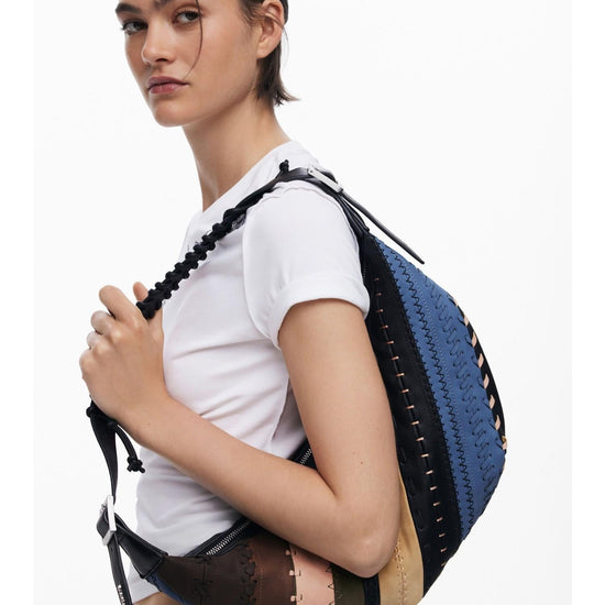 Borsa a tracolla di medie dimensioni, con tessuti effetto pelle tipo patchwork, manici intercambiabili e chiusura con cerniera. Colore: multicolore. Tasca interna con cerniera. Chiusura: con cerniera. Manici intercambiabili. Tecnica patchwork. Scomparto interno. Effetto pelle. Progettato a Barcellona. Misure: 18,5 x 22,6 x 8 cm. Composizione esterna: 100% poliuretano. Composizione interna: 100% poliestere. Trimming fabric material: 100% poliuretano.