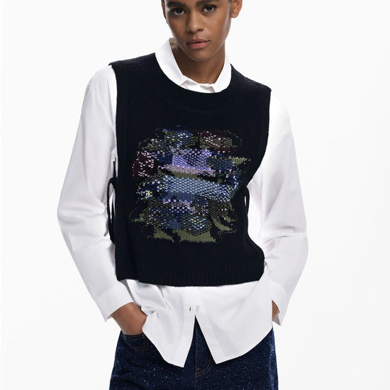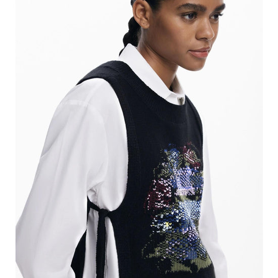 Camicia semplice a maniche lunghe 2 in 1 con gilet in maglia rimovibile, dettagli di fiocchi sui lati e stampa floreale a corona di fiori. Stampa floreale. Fit regular. Colletto a camicia. Manica lunga. Chiusura frontale. Multiposizione. Gilet rimovibile. Dettaglio di fiocchi sui lati. Progettato a Barcellona. Acquistando prodotti in cotone di Desigual, sostieni linvestimento in Better Cotton. Questo prodotto è ottenuto tramite un sistema di bilancio di massa e potrebbe non contenere Better Cotton. bettercotton.org/massbalance. Misure modello: altezza 178 cm, vita 59 cm, fianchi 86 cm. Taglia modello: M. Composizione esterna: 100% cotone.