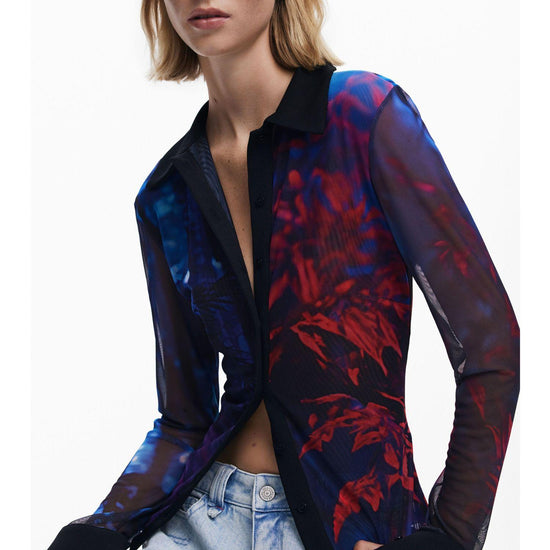 Desigual Maglietta abbottonata in chiffon Donna Nero