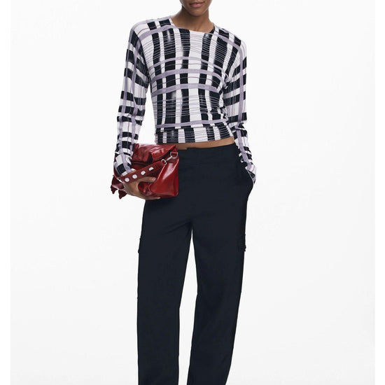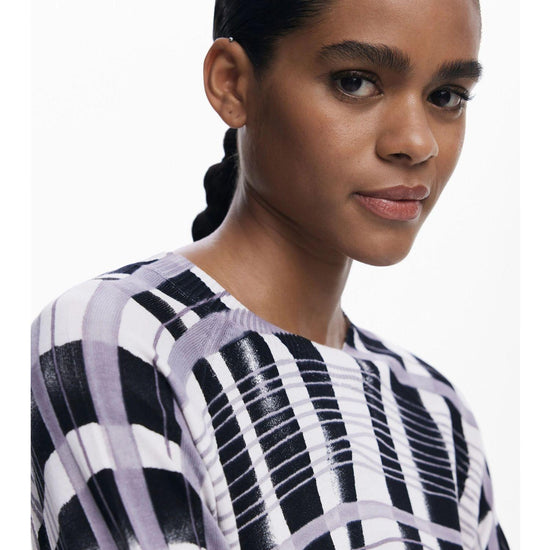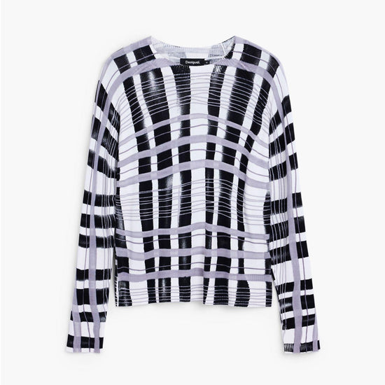 Maglione leggero a maniche lunghe con collo rotondo e stampa a righe stile mikado in versione orizzontale e verticale. Stampa a righe. Fit regular. Collo rotondo. Manica lunga. Tessuto leggero. Collezione AW25. Progettato a Barcellona. Misure modello: altezza 178 cm, vita 59 cm, fianchi 86 cm. Taglia modello: S. Composizione esterna: 80% viscosa, 20% poliammide.