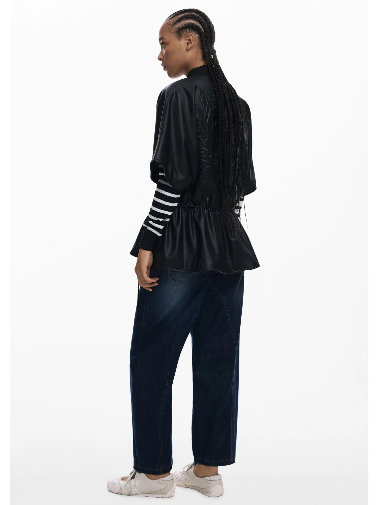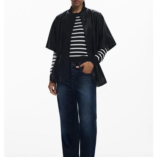 Poncho in tessuto effetto pelle, con elastico regolabile in vita, chiusura con cerniera e collo rotondo a maglia con rilievi 3D sulla schiena. Effetto pelle. Fit: Regular. Collo a maglia. Elastico regolabile in vita. Chiusura con cerniera. Dettagli effetto 3D sulla schiena. Dettagli a maglia. Collezione AW25. Progettato a Barcellona. Taglia unica. Composizione esterna: 100% POLIURETANO. Composizione interna: 100% POLIESTERE