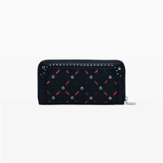Women's Large Black Studded Perforated Wallet