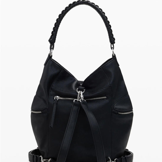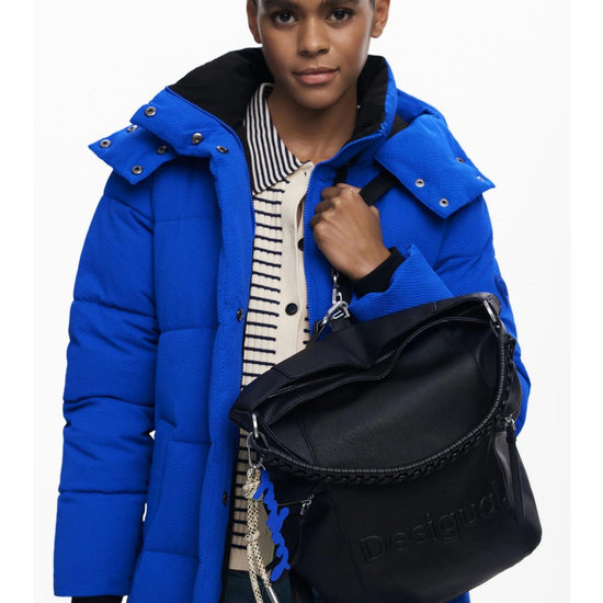 Zaino grande effetto pelle, con logo effetto 3D, chiusura con cerniera e manici rimovibili convertibili in borsa. Logo effetto 3D. Tasche laterali. Tasca posteriore esterna. Chiusura: con cerniera. Spallacci rimovibili dello zaino. Manico rimovibile tipo borsa. Combinazione di colori. Capacità: 13,08 l. Effetto pelle. Progettato a Barcellona. Misure: 25,60 x 14,60 x 12 cm. Composizione esterna: 100% POLIURETANO. Composizione interna: 100% POLIESTERE. Trimming fabric Material: 100% POLIURETANO