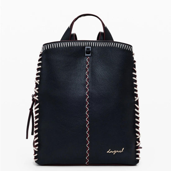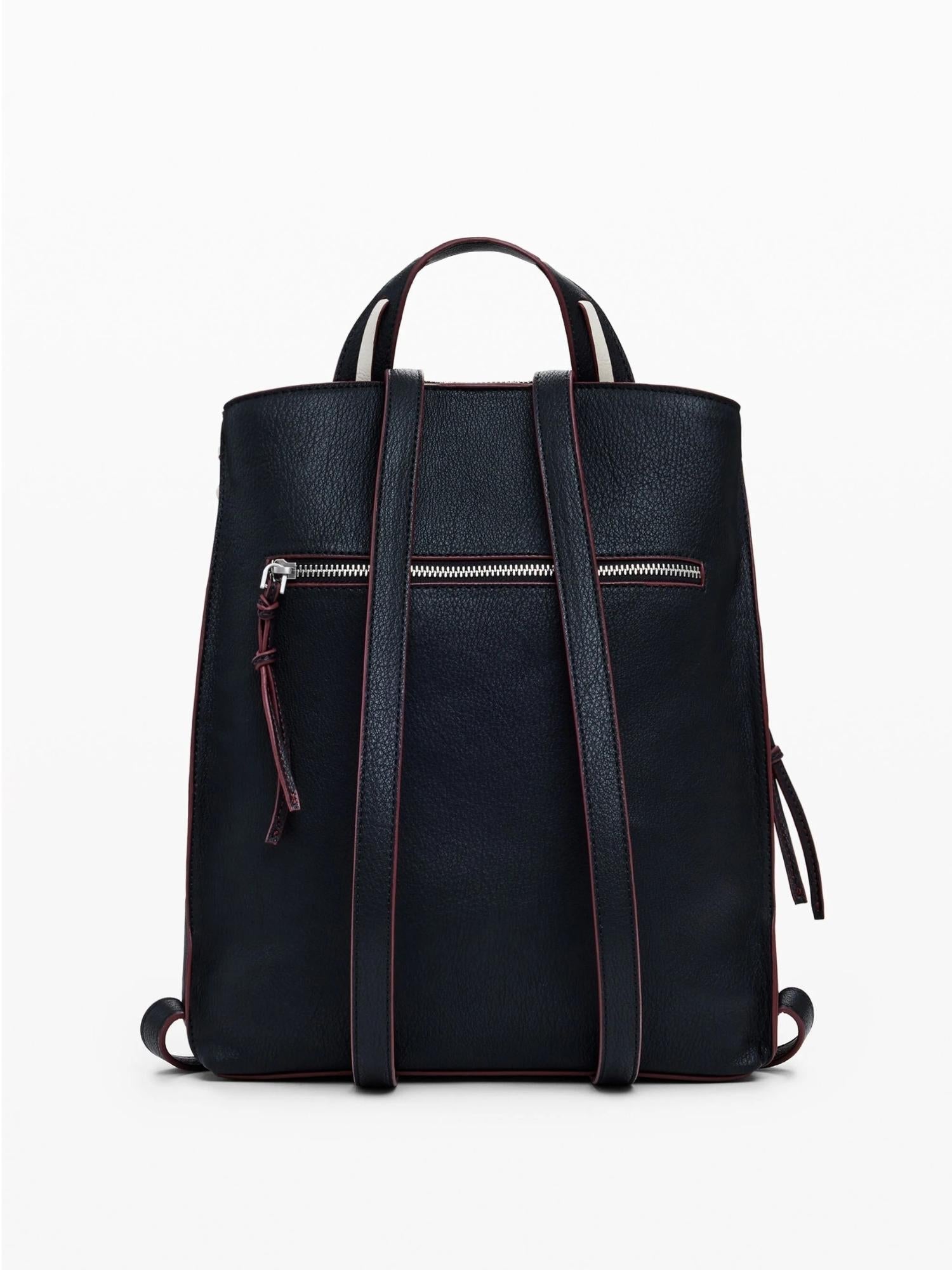 Zaino grande in effetto pelle con impunture a contrasto, vari scomparti e manico tipo borsa rimovibile. Impunture a contrasto. Tasca posteriore esterna. Chiusura: con cerniera. Vari scomparti interni. Dettaglio del logo in applicazione metallica. Capacità: 9,4 l. Effetto pelle. Progettato a Barcellona. Misure: 26,70 x 34,50 x 10,20 cm. Composizione esterna: 100% POLIURETANO. Composizione interna: 100% POLIESTERE. Trimming fabric Material: 100% POLIURETANO