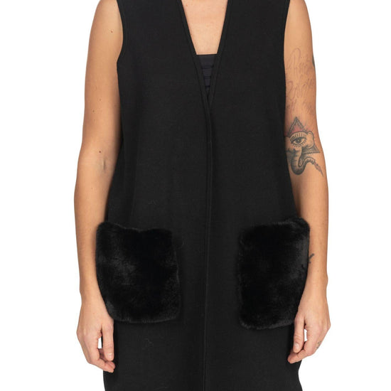 Cardigan smanicato con collo a V e tasche sui fianchi con effetto pelliccia