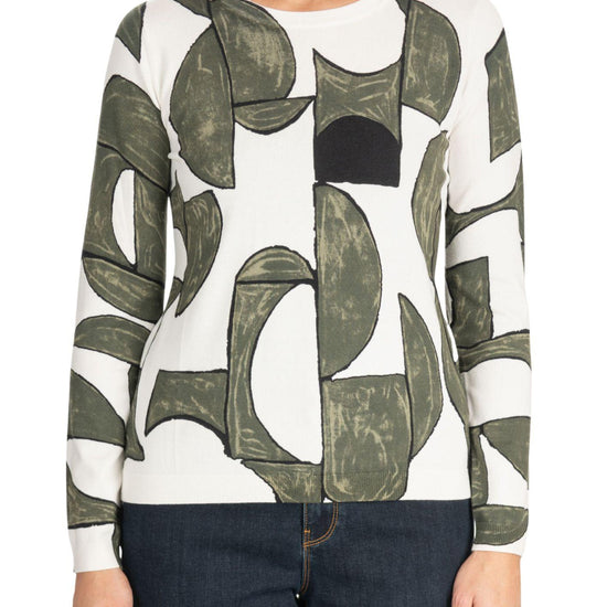 Diana Gallesi Maglia Donna Fondo Bianco Fantasie Geometriche in Verde