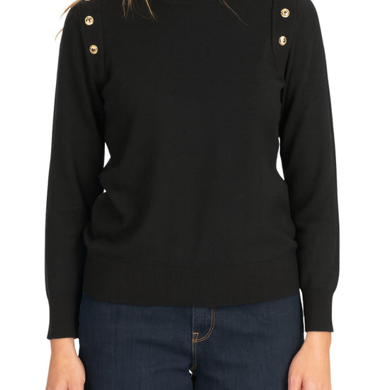 Maglia donna maniche lunghe e collo a lupetto, decorazioni sulle spalle, girovita polsini e colletto a costine