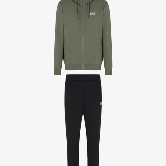 EA7 Emporio Armani Men's Tracksuit with Hood and Zip Green Black