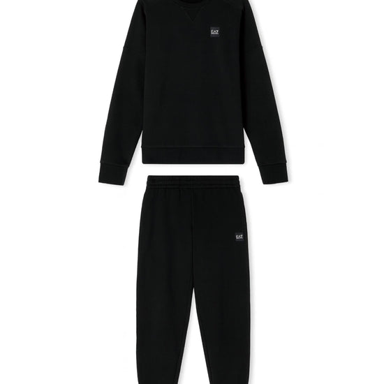 Tuta realizzata in misto cotone morbido e traspirante, un tessuto perfetto per offrire una sensazione di leggerezza e libertà di movimento, pensata per il tempo libero, lallenamento o il relax quotidiano. La felpa girocollo definisce lo stile funzionale e pratico del capo, i pantaloni jogger, con coulisse regolabile e fondo elasticizzato, garantiscono una vestibilità comoda e versatile. Una proposta perfetta per accompagnare ogni momento della giornata, ideale per chi cerca un look sportivo senza rinunciare al comfort. Il design essenziale è completato dal logo tono su tono, per un tocco distintivo ma discreto. Tessuto: 85% cotone, 15% poliestere; dettagli in maglia felpa: 96% cotone, 4% elastan; tessuto pantaloni: 85% cotone, 15% poliestere; pantaloni dettagli: 96% cotone, 4% elastan. Vestibilità modern. Tuta composta da: Felpa girocollo, logo EA7 a contrasto sul petto, Pantaloni joggers con due tasche, logo EA7 a contrasto