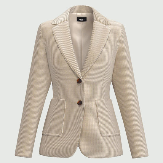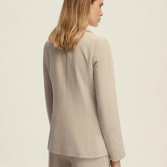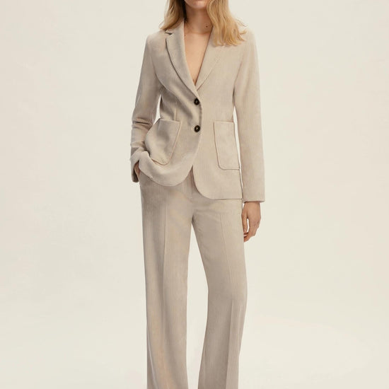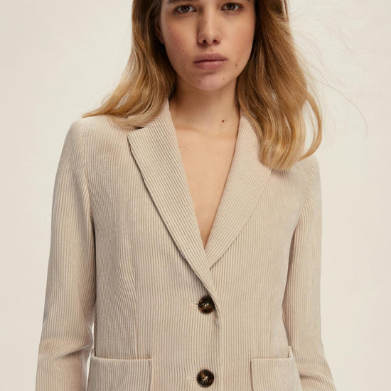 This stretch corduroy blazer with internal lining combines 1970s retro charm with contemporary urban elegance. The straight fit and lapel neckline lend a refined look, while the side patch pockets and single-breasted two-button closure add a casual chic touch. Perfect with matching trousers for a sophisticated and striking look. Fabric: 86% polyester, 13% polyamide, 1% elastane. Lining: 97% polyester, 3% elastane.
