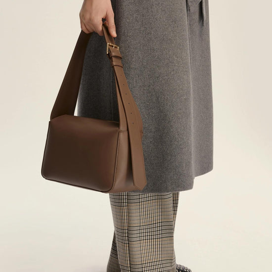 Clean lines, a velvety texture, and captivating versatility. This shoulder bag is a perfectly executed style statement, suitable for carrying by hand or over the shoulder thanks to its adjustable handle. Perfect for daytime and city wear, thanks to its removable pouch. Jersey shoulder bag with a velvety finish. Adjustable handle with a light gold-finish buckle. Unlined. Removable internal pouch. Dimensions: 18 x 26 x 12 cm. Polyester bag with polyurethane coating. Lining: 100% polyester.
