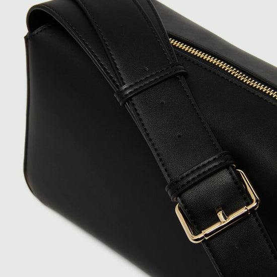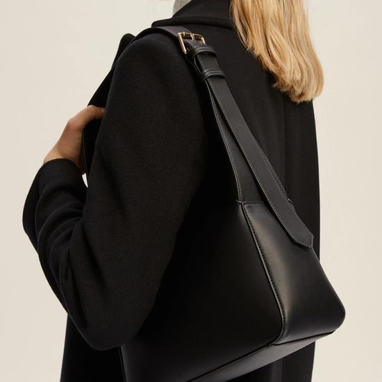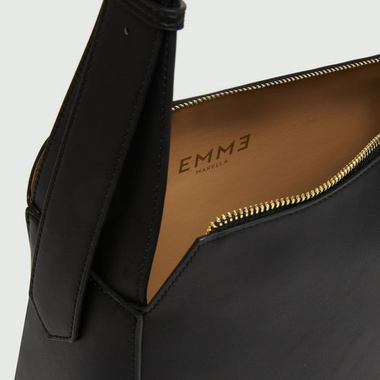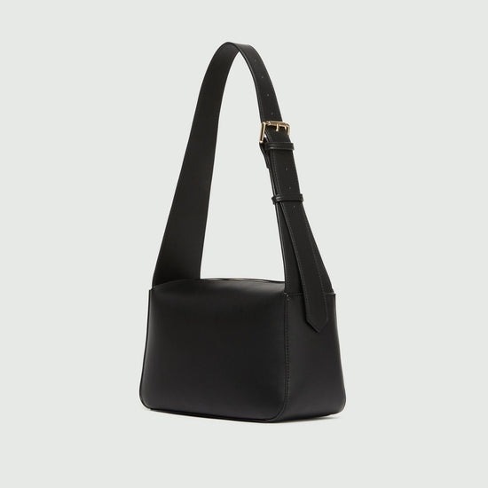 Clean lines, a velvety texture, and captivating versatility. This shoulder bag is a perfectly executed style statement, suitable for carrying by hand or over the shoulder thanks to its adjustable handle. Perfect for daytime and city wear, thanks to its removable pouch. Jersey shoulder bag with a velvety finish. Adjustable handle with a light gold-finish buckle. Unlined. Removable internal pouch. Dimensions: 18 x 26 x 12 cm. Polyester bag with polyurethane coating. Lining: 100% polyester.