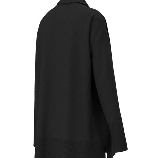 High neckline with dropped shoulders, ribbed hem and cuffs, and side slits. Knitted fabric: 72% Viscose, 28% Polyester.
