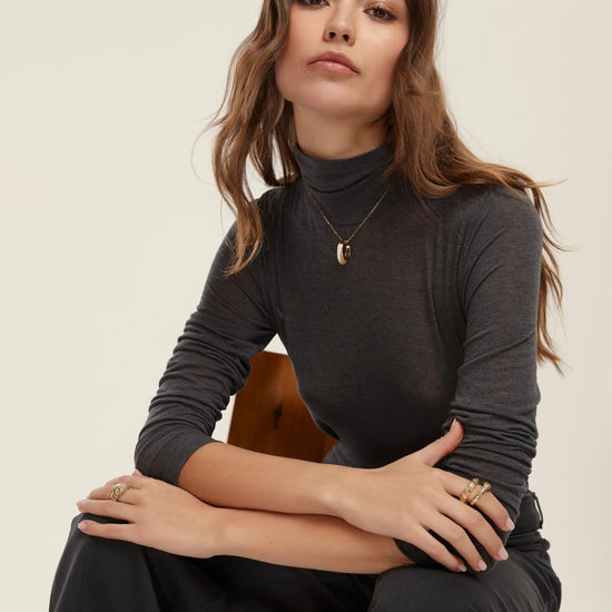 Emme Marella Women's Turtleneck in Cashmere Blend Ruggito Dark Grey