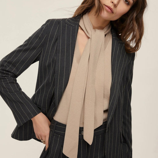 This herringbone-pattern woven jacket exudes British charm and feminine style, featuring slightly fitted lines that flatter the figure. Crafted from a stretch cotton blend, it combines elegance and comfort in a garment ideal for any occasion. The lapel neckline and two-button closure lend a classic touch, while the patch pockets with exposed stitching add a casual yet contemporary touch. Perfect paired with a lingerie-style top for a sophisticated and sensual contrast. Composition: 56% polyester, 22% cotton, 21% viscose, 1% elastane.