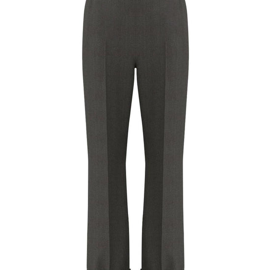 Patterned yarn-dyed stretch gabardine trousers. Slim fit with a flared hem, elasticated insert at the back waist, and side slant pockets. Ironed crease at the front and back with turn-ups at the bottom. Fabric: 72% Polyester, 21% Viscose, 7% Elastane