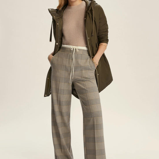 With an unexpected twist on tailored style, these stretch gabardine trousers play with looks by breaking the rules. Straight-leg for a clean silhouette, they're accented with the textured sheen of satin at the waist for a cool touch. Yarn-dyed stretch gabardine trousers. Straight fit. Double belt design, with gathered satin lining and drawstring. Side opening with invisible zip. Side slant pockets and pressed crease on the front and back. Composition and care instructions: Do not wash; do not bleach; do not tumble dry; cool iron max 120°C; delicate dry clean using perchloroethylene; do not professionally wet clean. Fabric: 72% polyester, 21% viscose, 7% elastane; - decorations excluded.