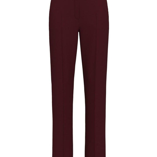 Versatile and feminine, these slim flannel trousers fold and flex with every movement thanks to the stretch yarn in the weave. Available in delicate seasonal shades, they'll take you through every day in style. Stretch viscose blend flannel trousers. Slim fit. Snap button and hidden zip closure. Belt loops. Side slant pockets. Ironed crease on front and back. Fabric: 67% Polyester, 31% Viscose, 2% Elastane.