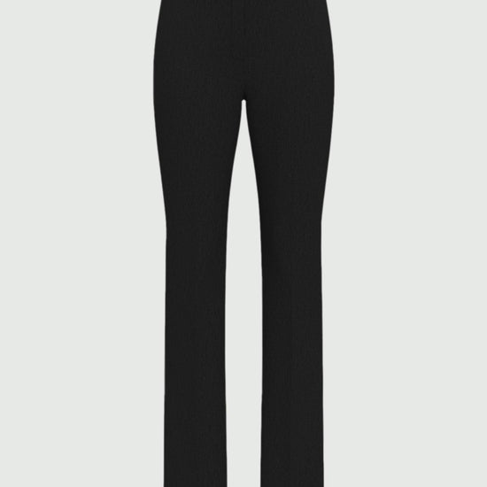 Soft and comfortable, these stretch flannel trousers elongate the figure thanks to their straight leg. Pair them with a sweatshirt or a belted blazer to define the silhouette. Stretch viscose blend flannel trousers. Straight fit. Hook-and-eye closure and concealed zip. Side slant pockets. Ironed crease on front and back. Fabric: 69% Polyester, 29% Viscose, 2% Elastane.