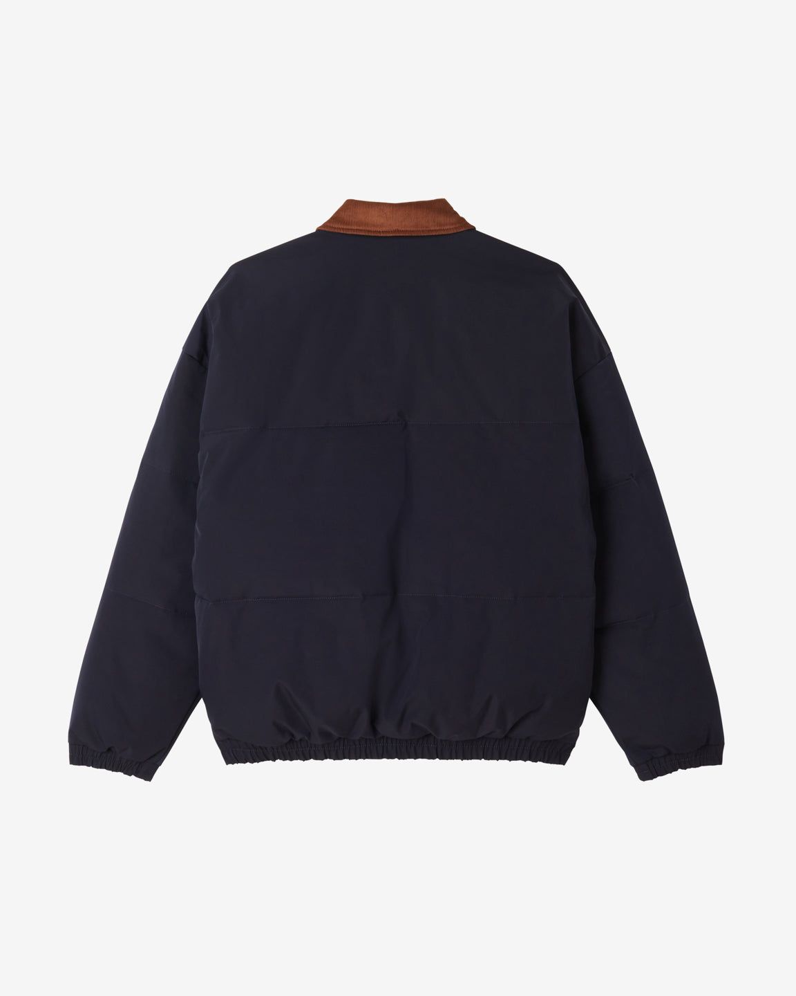 Il design presenta un colletto in velluto a coste a contrasto, aggiungendo un tocco di eleganza al look casual. La chiusura frontale combina bottoni a pressione esposti e una zip nascosta, assicurando praticità e protezione dagli agenti atmosferici. Le tasche laterali con zip a scomparsa offrono spazio sicuro per piccoli oggetti, mentre i polsini e l'orlo elasticizzati migliorano la vestibilità.