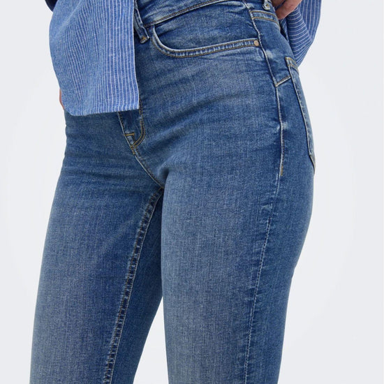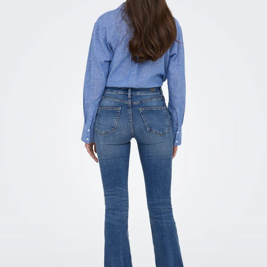 JDY is an international full-concept fashion brand offering accessible, on-trend products to fashion-conscious consumers. Flared fit jeans, button fly, back pockets, coin pocket, front pockets, mid-rise, belt loops. These flared jeans hug the hips and thighs and flare from the knee down. 98% Cotton, 2% Elastane