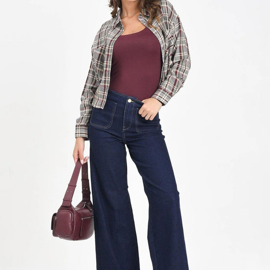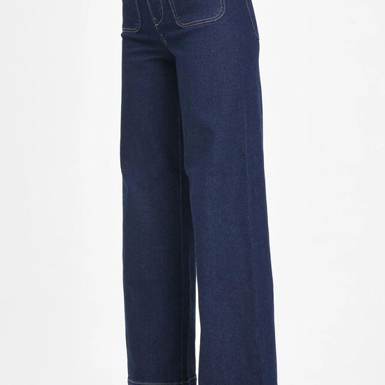 JDY Jeans in denim blu da donna, un capo dal taglio pulito ed elegante, perfetto per look versatili che spaziano dal casual chic all'ufficio. Realizzati in un tessuto strutturato ma confortevole, presentano una vita alta e una gamba ampia e dritta, ispirata al modello palazzo. Il design è arricchito da tasche applicate sia sul davanti che sul retro, con cuciture a contrasto che ne evidenziano la costruzione sartoriale. La linea morbida e fluida slancia la figura e si abbina facilmente a bluse, body o top aderenti, risultando ideale anche con tacchi o stivaletti.
