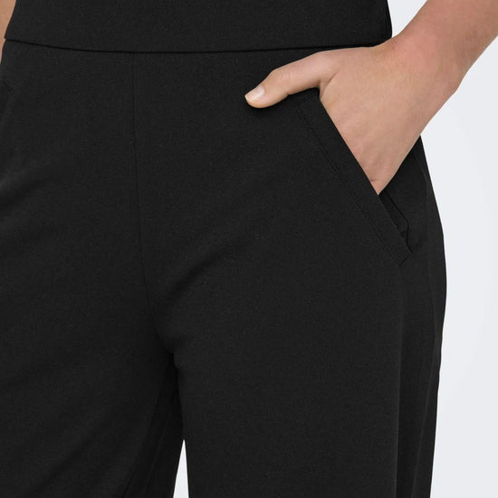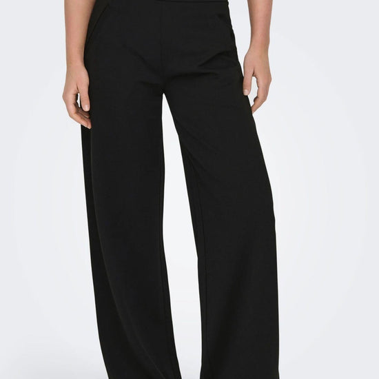 Pantaloni a gamba larga e vita alta elasticizzata, wide leg fit. 95% Poliestere, 5% Elastan