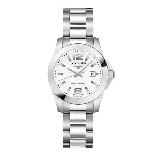 Longines orologio Conquest 29,5mm bianco mat acciaio quarzo L3.376.4.16.6