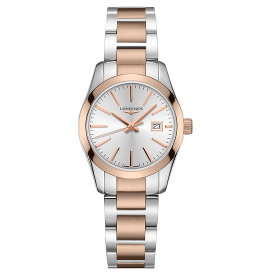 Longines orologio Conquest Classic 29,5mm argento quarzo acciaio PVD oro rosa L2.286.3.72.7