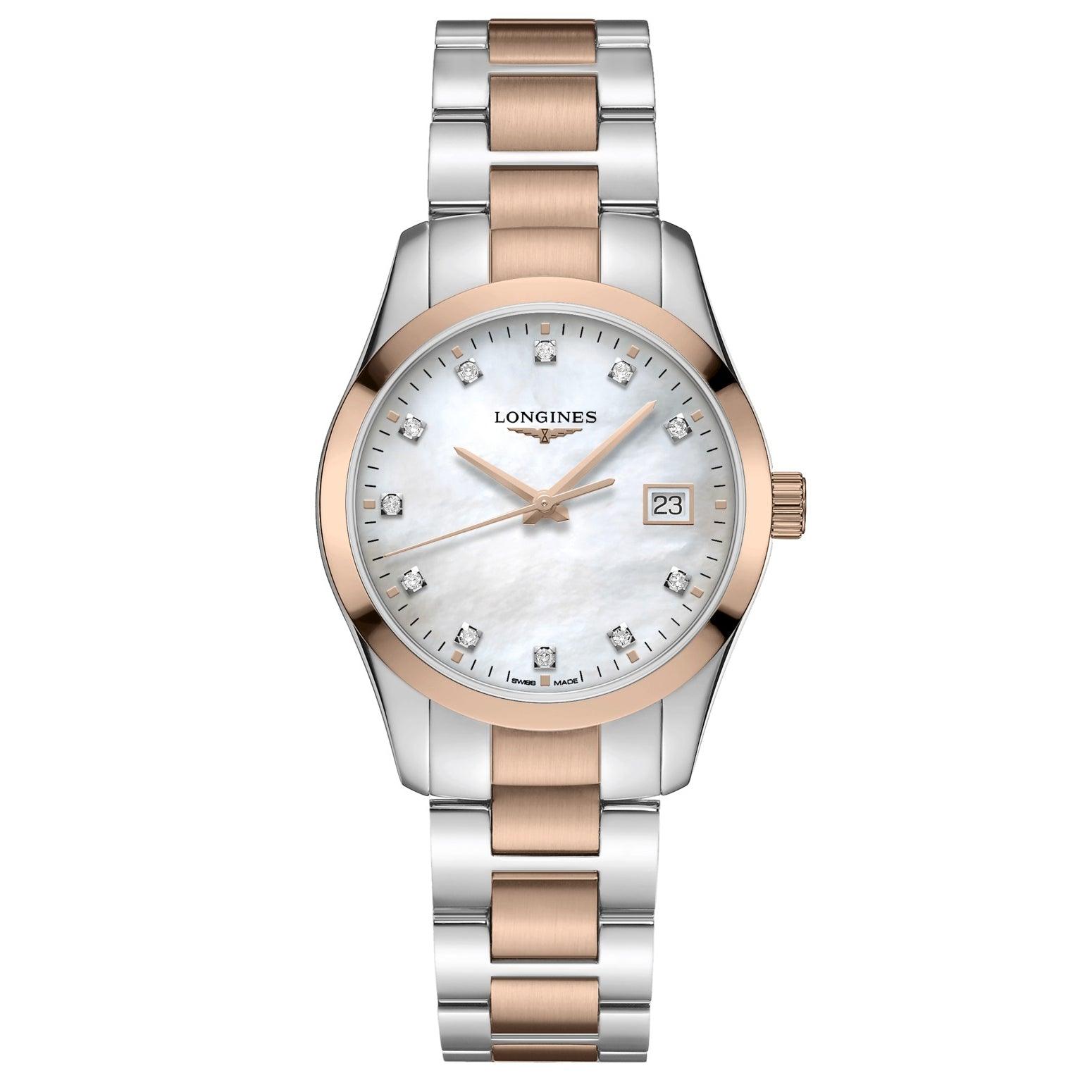 Longines orologio Conquest Classic 34mm madreperla diamanti quarzo acciaio finitura PVD oro rosa L2.386.3.87.7