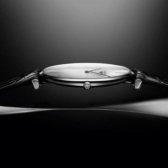 La Grande Classique de Longines incarna la più antica tradizione estetica del marchio dalla clessidra alata. Il suo profilo sottile, dovuto al particolare design della cassa, dona alla collezione una bellezza senza tempo. Fedeli sotto tutti gli aspetti alle caratteristiche delle origini, i modelli di questa linea ornano oggi il polso di chi sa apprezzare qualità ed affidabilità.