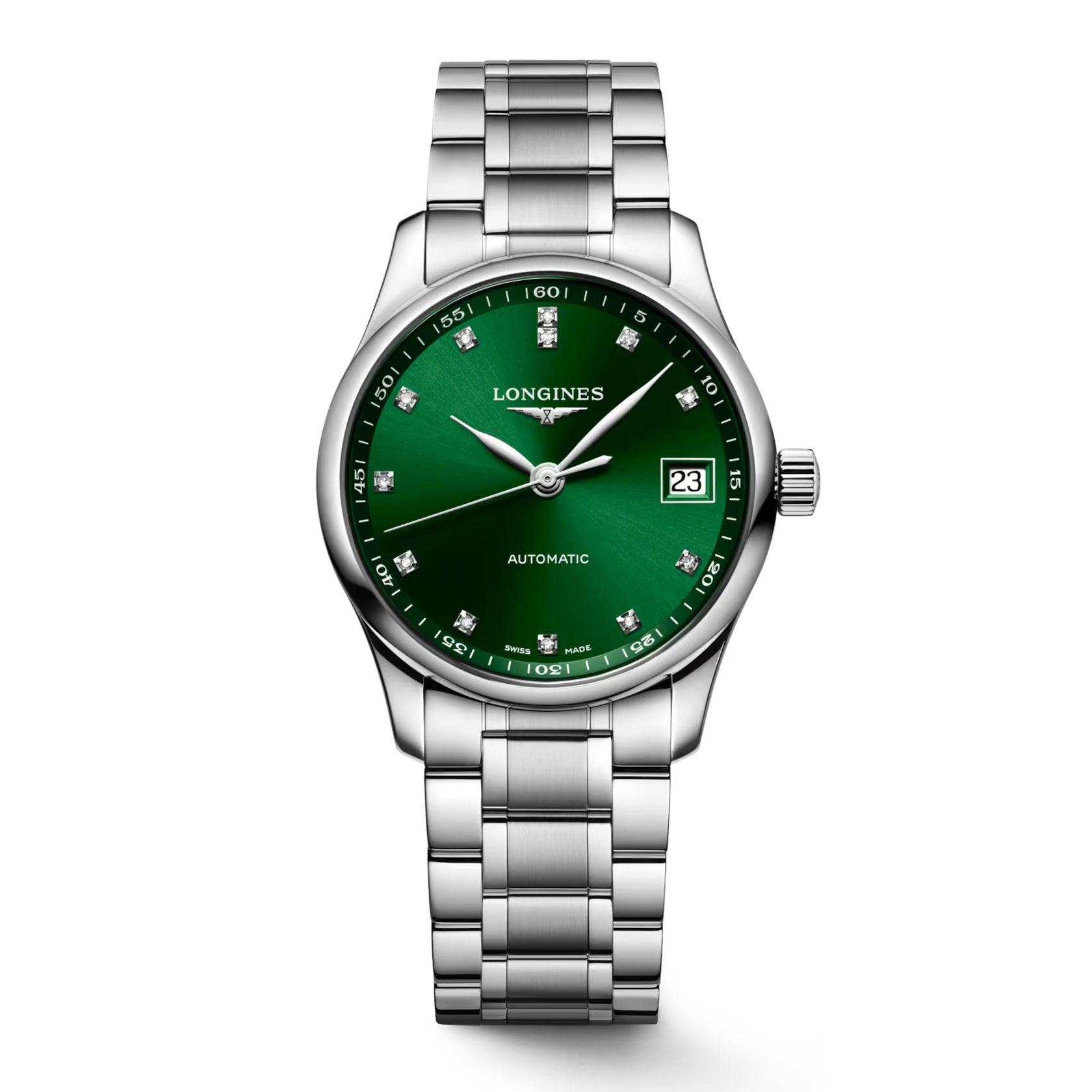 Longines orologio Master Collection 34mm verde diamanti automatico acciaio L2.357.4.99.6