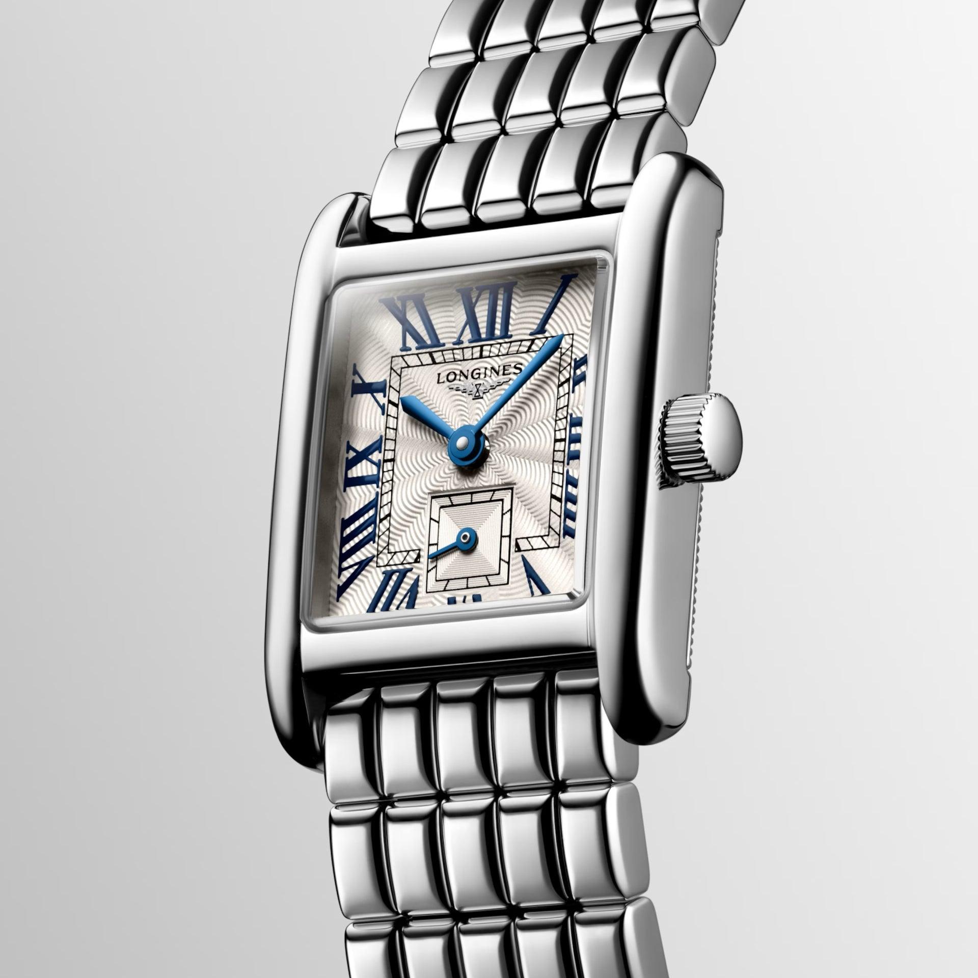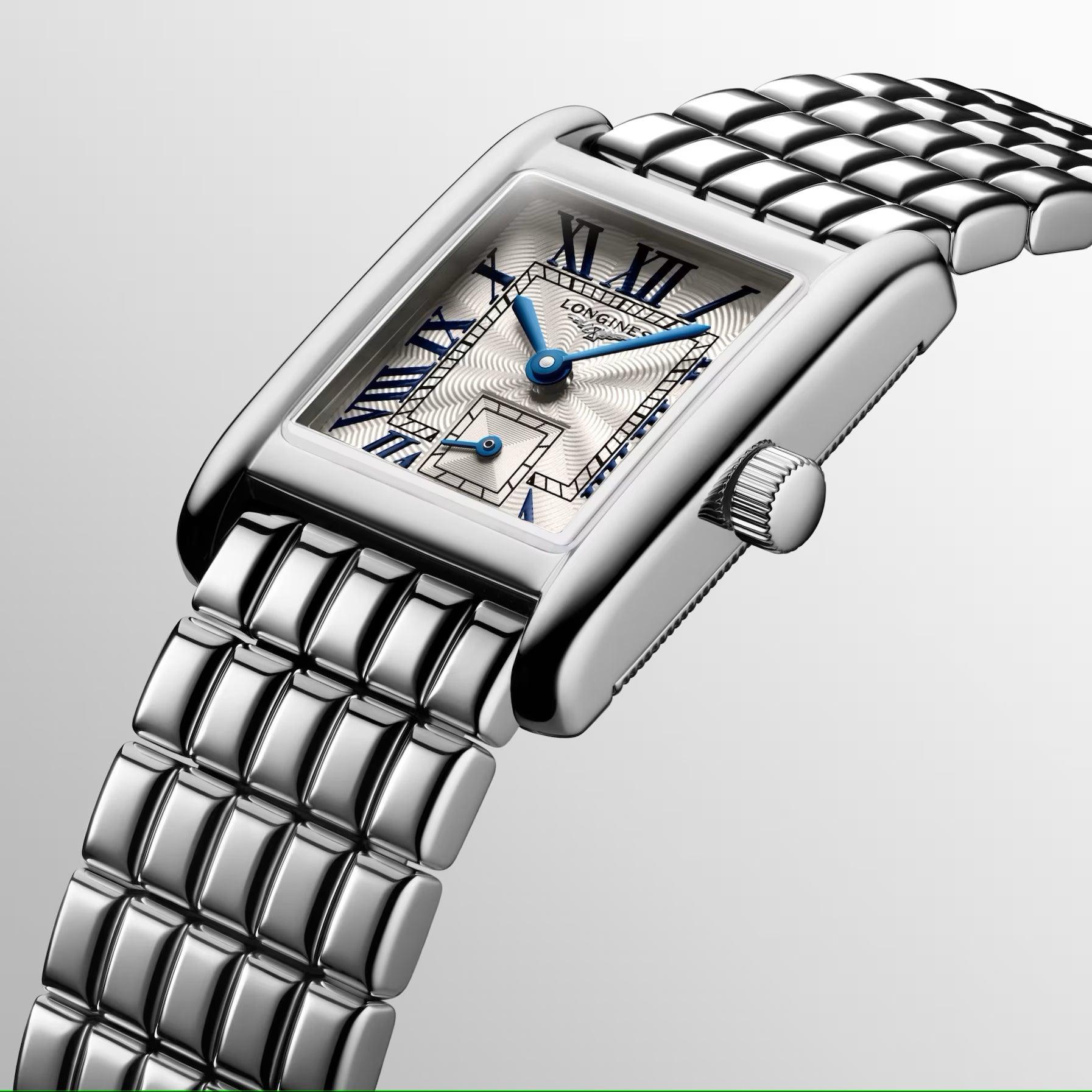 Ogni referenza della collezione Mini DolceVita presenta una cassa rettangolare in acciaio inossidabile da 21,50 mm x 29,00 mm ed è alimentata da un movimento al quarzo L178 ad alta precisione. Il quadrante rettangolare color argento all’interno della cassa richiama l’attenzione sulla sua eleganza senza compromessi.