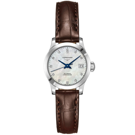 Longines orologio Record collection 26mm madreperla diamanti automatico COSC acciaio L2.320.4.87.2