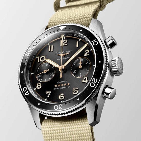 Longines orologio Spirit Flyback 42mm nero automatico acciaio L3.821.4.53.9