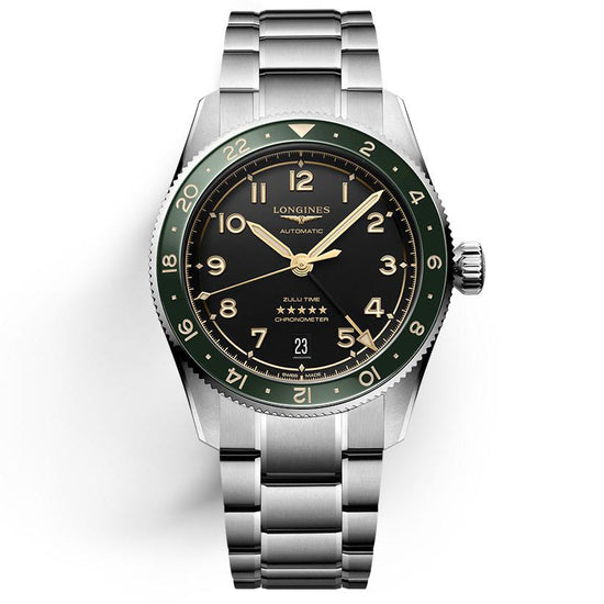 Il LONGINES Spirit Zulu Time simboleggia la maestria centenaria del marchio negli orologi con più fusi orari. Le sue origini e il suo nome derivano dal primo orologio da polso LONGINES con due fusi orari, realizzato nel 1925, che presentava la bandiera Zulu sul quadrante (dove Zulu si riferisce alla lettera “Z” che indica il tempo universale per gli aviatori). Esteticamente, il LONGINES Spirit Zulu Time si distingue per l’esecuzione meticolosa e la particolare cura dei dettagli. Presenta una lunetta girevole bidirezionale con inserto in ceramica. Ogni modello è alimentato da un esclusivo calibro LONGINES, dotato di un bilanciere-spirale in silicio, resistente ai campi magnetici e certificato come cronometro COSC.