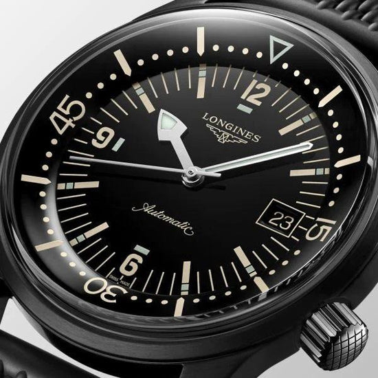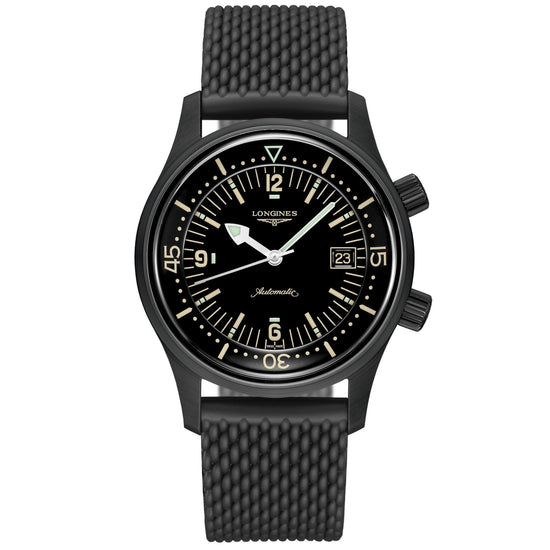 Longines orologio The Longines Legend Diver Watch 42mm nero automatico acciaio finitura PVD nero L3.774.2.50.9