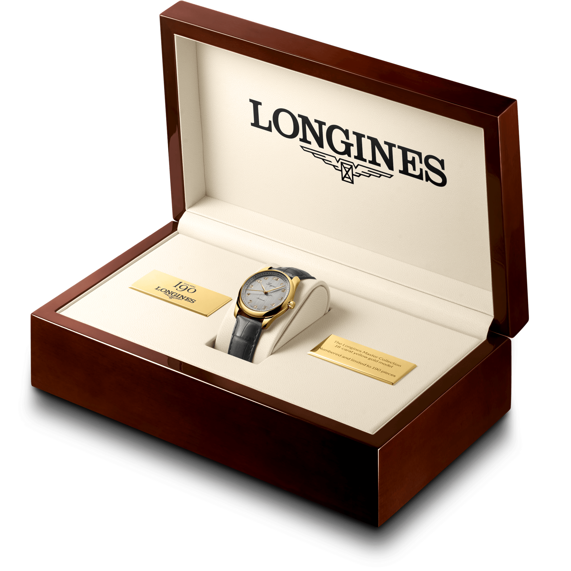 In occasione del suo 190° anniversario, Longines presenta una serie di segnatempo esclusivi della Longines Master Collection, che si distinguono per la meticolosa maestria artigianale e la particolare attenzione riservata a ogni dettaglio. Per sottolineare la loro esclusività, le versioni in oro sono disponibili in edizione limitata e numerata di 190 pezzi. Il quadrante argentato spazzolato si distingue per la sua finitura unica e la delicata incisione con numeri arabi. Le eleganti lancette in oro segnano le ore, i minuti e i secondi, facendo risaltare la raffinata purezza del quadrante. La cassa da 40 mm in oro giallo 18 carati ospita un esclusivo movimento di manifattura Longines con un bilanciere-spirale in silicio. Tutta la scrupolosa maestria artigianale di questo calibro può essere ammirata attraverso il fondello trasparente, che presenta un'incisione commemorativa. Un morbido cinturino grigio antracite in pelle completa lo stile elegante di questa lussuosa creazione.