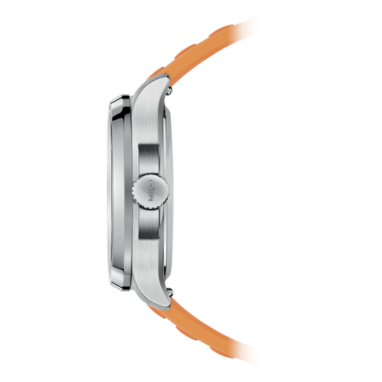 Un brillante ritorno di fiamma! Nata dallo straordinario patrimonio di Mido, la cassa a forma di TV torna al centro della scena per il Multifort TV Big Date, tanto intenso quanto preciso, grazie al suo formidabile movimento meccanico. Il design moderno e dinamico di questo orologio svizzero è sottolineato da un quadrante spazzolato orizzontale di grande impatto e dalla sua funzione distintiva: la scritta BIG DATE a ore 12. Il suo formidabile movimento automatico di ultima generazione, il Calibro 80, è dotato di una spirale high-tech in Nivachron™ che offre un'eccezionale resistenza agli urti e ai campi magnetici.