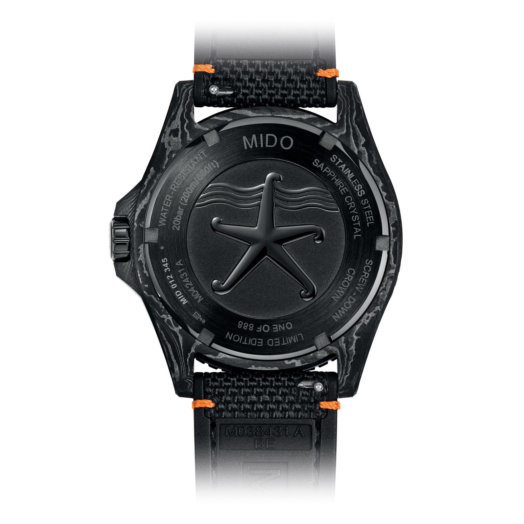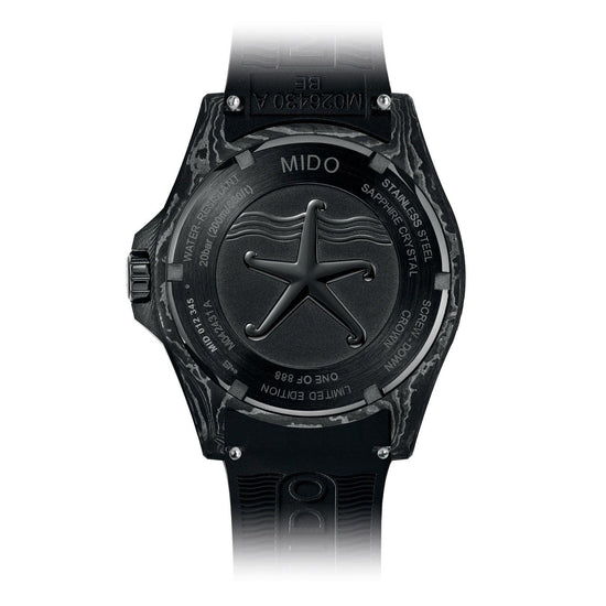 MIDO ha inserito la ceramica - un materiale eccezionale per l'orologeria - nella lunetta rotante unidirezionale del suo Ocean Star 200C. Il quadrante è decorato con indici applicati individualmente, ricoperti da pigmenti di Super-Luminova® bianca. Questo orologio subacqueo è resistente fino a 20 bar (200m), con una forma della cassa che permette una protezione extra per la corona a vite. Il fondello della cassa è inciso con il logo Ocean Star. Il movimento automatico, inoltre, ha un'autonomia fino a 80 ore di riserva di carica.