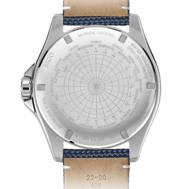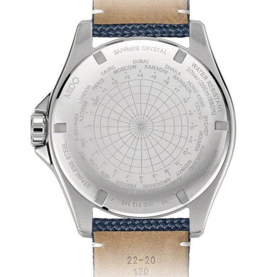 MIDO arricchisce la sua collezione Ocean Star con una versione dotata della funzione GMT molto pratica. Visualizza chiaramente l'ora in due diversi fusi orari: l'ora di casa e l'ora locale. Sul retro dell'orologio - dotato di calibro 80, che offre una riserva di carica fino a 80 ore - MIDO ha inciso le indicazioni del fuso orario. La funzione GMT estremamente facile da usare offre il doppio della libertà per coloro che si trovano nel bel mezzo dell'oceano o di un'avventura adrenalinica.