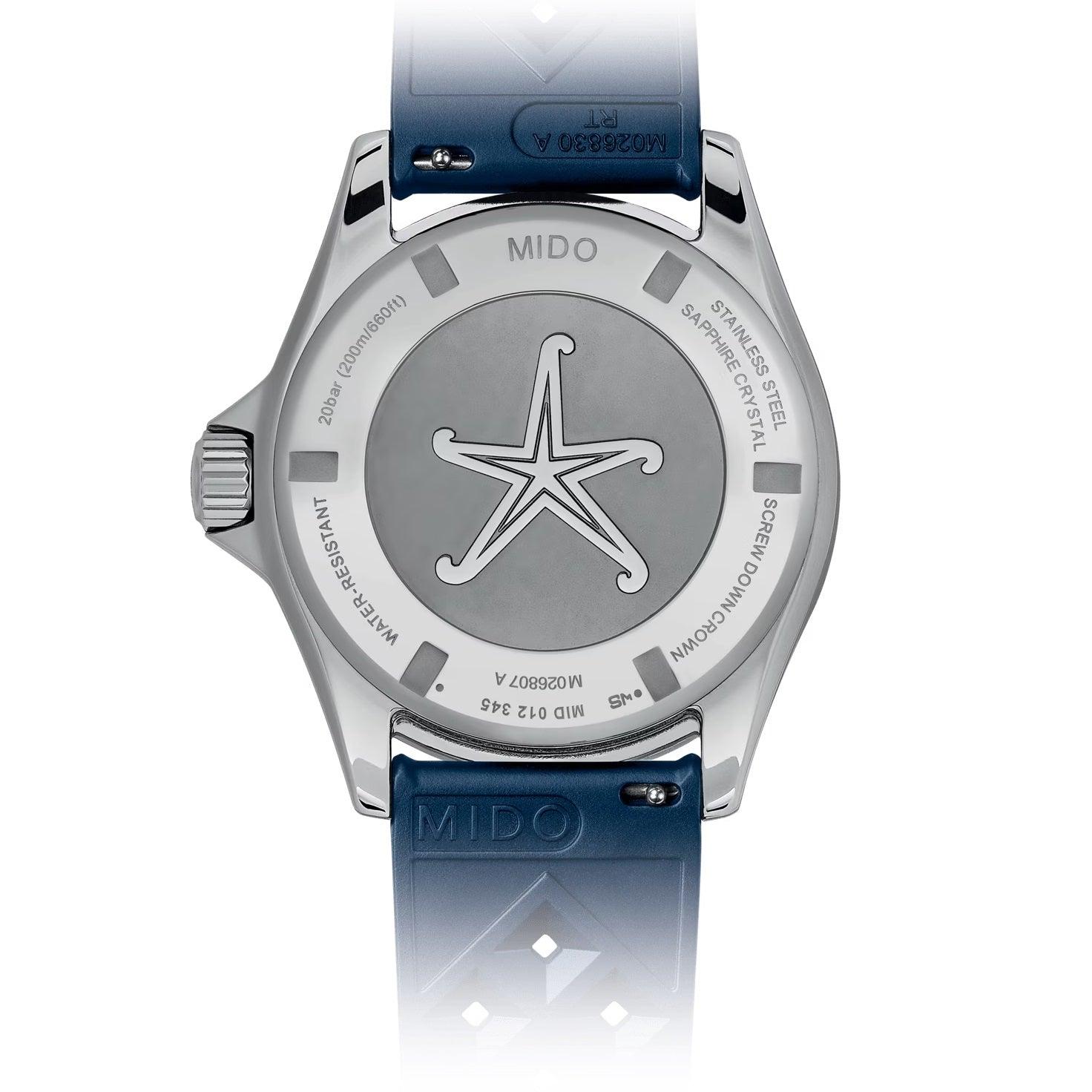 Mido rende omaggio alla collezione Ocean Star. Ispirandosi al passato, l'Ocean Star Tribute reinterpreta i codici estetici dei modelli da immersione degli anni Sessanta del Novecento e ne riprende tutti i segni particolari: è dotato di un movimento automatico Calibro 80 fino a 80 ore di riserva di carica, impermeabile fino a una pressione di 20 bar (200 metri), e il suo bracciale esclusivo conferisce all’orologio un confort assoluto.